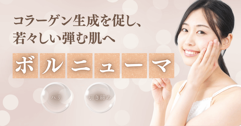 頬のたるみやハリ感のある肌作りに合わせたリフトアップのための施術や、毛穴の開きやニキビ跡など肌の凸凹による肌質の改善、肌治療機器など