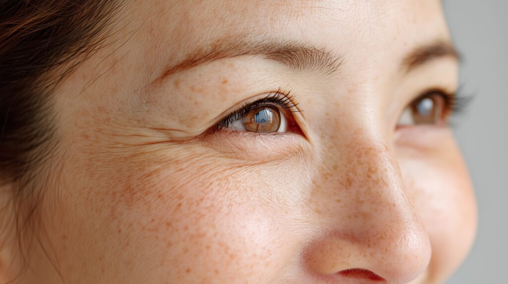 学童期に発症し、1mm~数mmの褐色班です。両頬~鼻にかけて散在し、手の甲・デコルテ・肩・背中にもできることがあります。紫外線で濃くなるのも特徴で、色白で乾燥肌の方によく見られます。