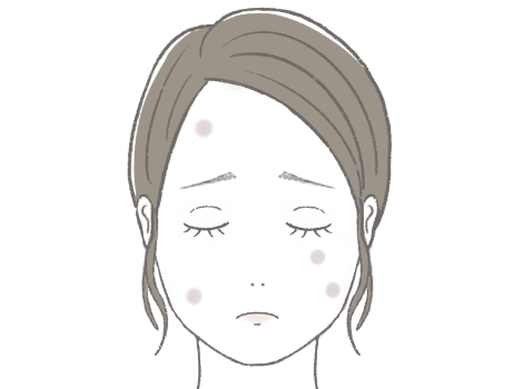 化粧かぶれ、ニキビ、アトピー性皮膚炎、火傷などの炎症の後に残る色素沈着によってできるシミです。通常は炎症がなくなれば、時間の経過とともに改善しますが、長期間残存することも稀にあります。紫外線によって濃くなる場合もあります。