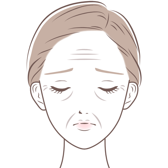 たるみジワは、加齢による皮膚や皮下組織のボリューム低下や、重力の影響によって生じるシワです。