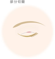 埋没法と切開法の中間的なところに位置するのが、部分切開法です。腫れなどのダウンタイムも比較的軽度です。